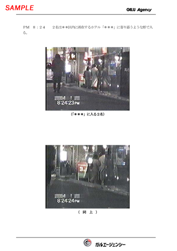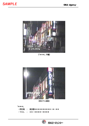 指定された時間から調査を開始し、取り決めた条件(対象者の帰宅等)まで記録をしていきます。 不貞行為の確認の場合ですとホテルや相手の自宅の出入りなどを撮影していきます。 これがいわゆる証拠と言われているものです。